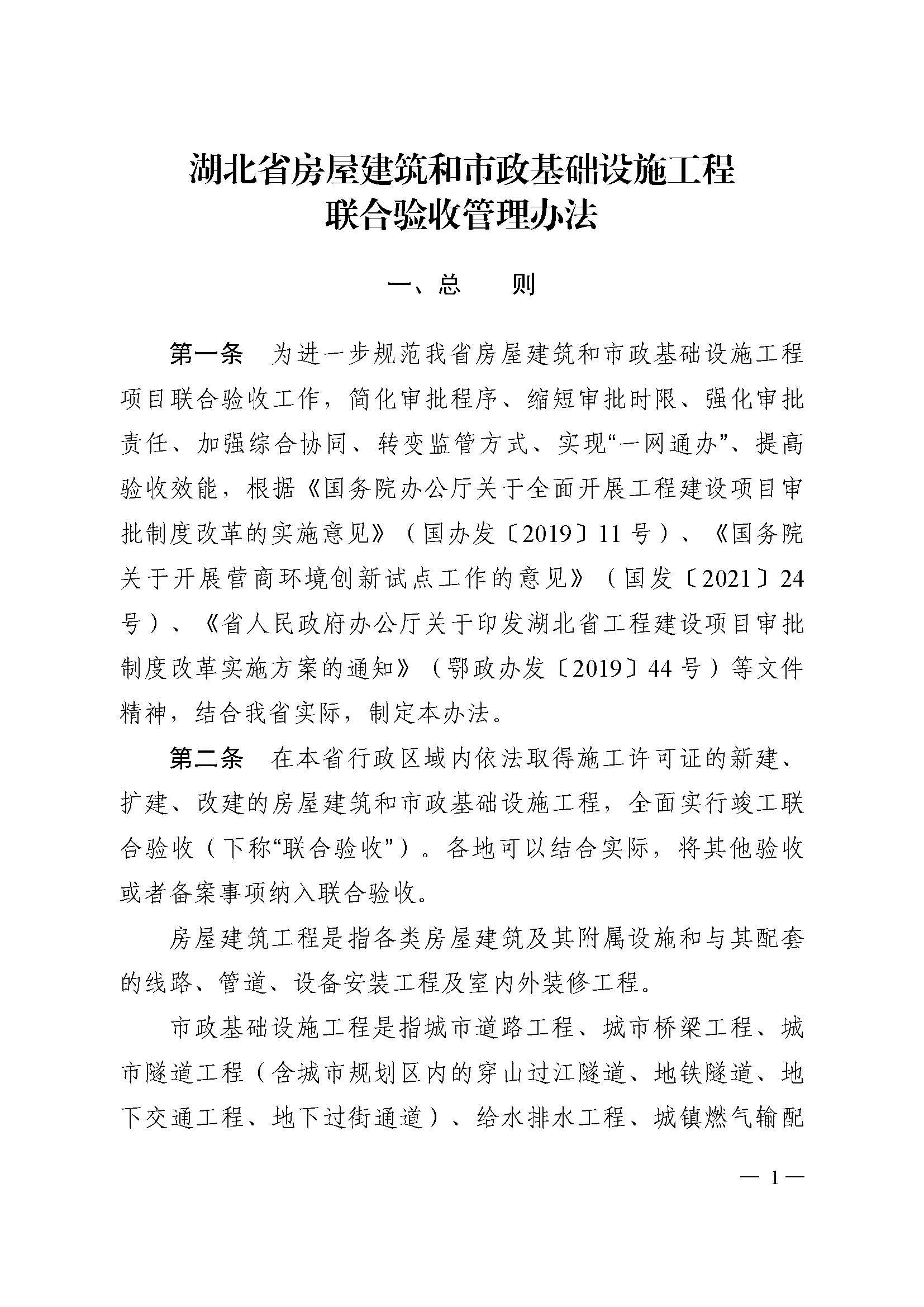 《湖北省房屋建筑和市政基礎設施工程聯(lián)合驗收管理辦法》